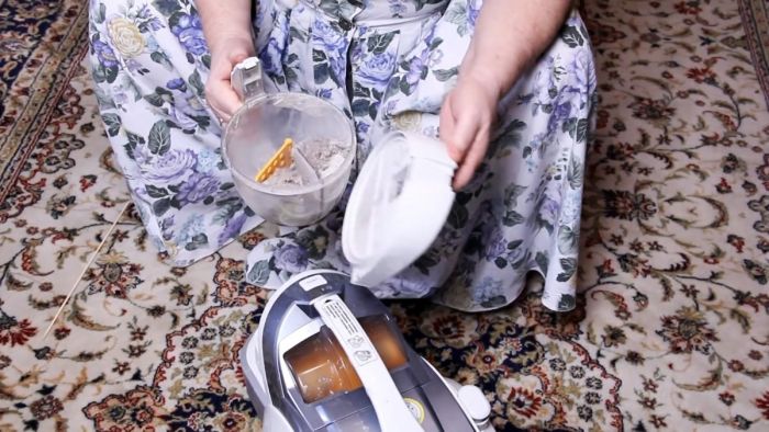 После очистки можете заглянуть в контейнер пылесоса, вы будете удивлены тому количеству грязи, которое удалось достать с глубин ковра.