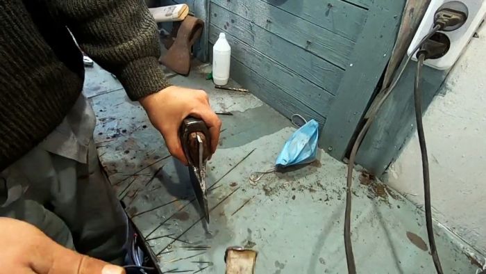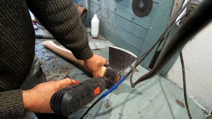 Процесс установки топорища