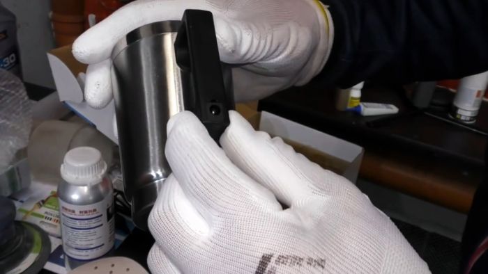 К чашке подсоединяется блок питания, и она включается в сеть.