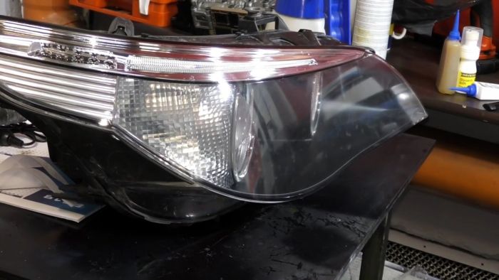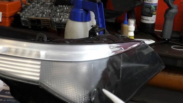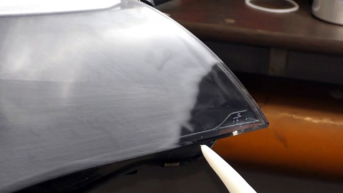 Все оставшиеся риски и матовость выравниваются, и фара становится прозрачной в обработанном месте.
