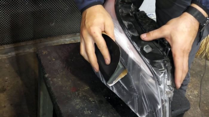 Затем фара промывается, сушится и обезжиривается.
