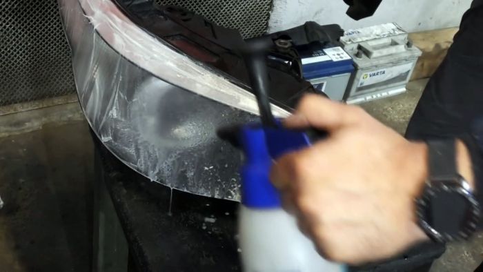 Отшлифованная фара станет матовой. Проверять, ушла ли глубокая царапина, можно поливая поверхность водой. На мокром стекле все дефекты хорошо заметны.