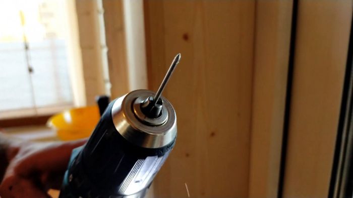 Чтобы гвоздь не расколол тонкий пиломатериал, его нужно закрутить. Для этого он зажимается в шуруповерте, и деталь им просверливается по месту насквозь как сверлом.