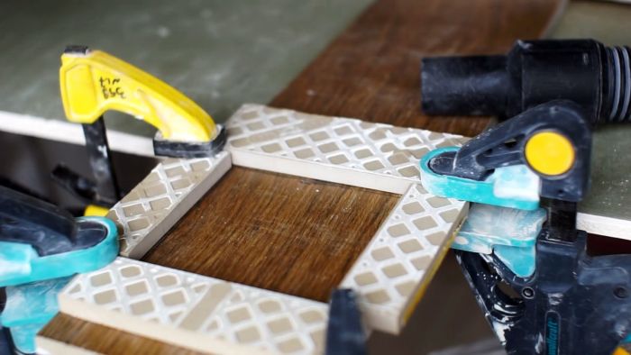 Плитка переворачивается и режется с обратной стороны. Так как там видны сквозные отверстия, то это будет несложно. На обороте уже можно заходить за контур квадрата.