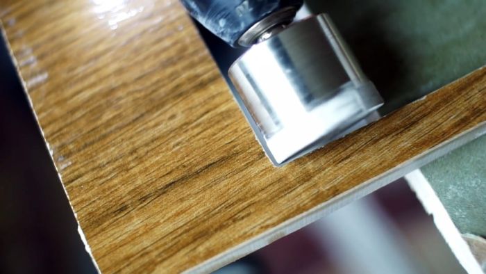Сделав отверстие, нужно подровнять внутренний угол краем алмазной коронки.