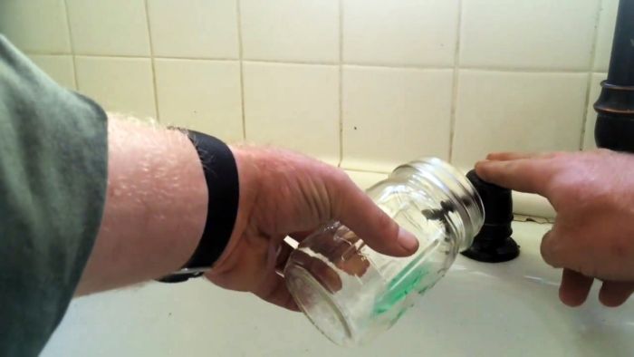 В небольшую емкость набирается пара миллилитров жидкого мыла и теплая вода.