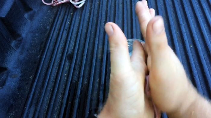 Если он все равно не поддается, то потребуется подцепить петлю шилом или отверткой. Благодаря мыльной воде они уже точно влезут.