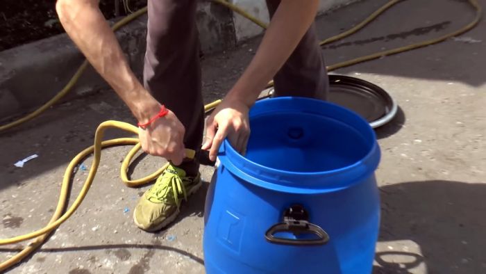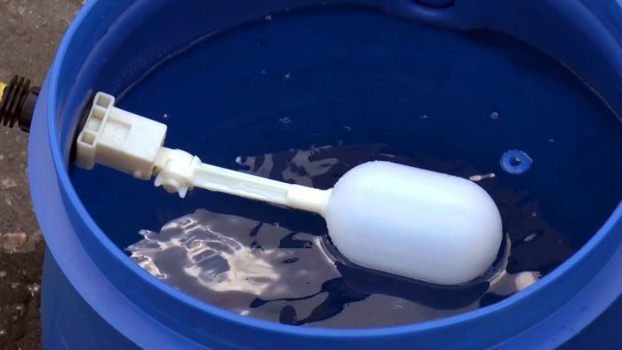 В стенке емкости ближе к верхнему краю просверливается отверстие соответствующее диаметру резьбы на поплавковом клапане.