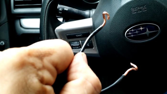 Из толстого провода нужно сделать 2 перемычки. Для меньшего сопротивления они должны быть как можно короче 35–50 см. Изоляция на концах перемычек зачищается на 3 см. С одной стороны они сгибаются, чтобы плотно зацепится за контакты на аккумуляторе шуруповерта.