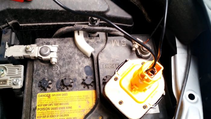 Противоположные концы перемычек присоединяются к клеммам на аккумуляторе автомобиля, обязательно с соблюдением полярности. После этого машина запускается, и провода снимаются. Если достаточно толстого провода нет, то достаточный пусковой ток по нему не перейдет и ничего не получится. Тогда нужно присоединиться тонкими перемычками и подождать. В таком случае автомобильный аккумулятор зарядится от батареи шуруповерта.