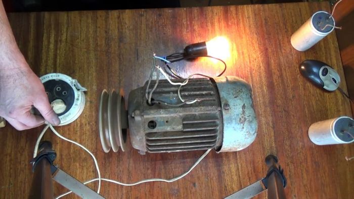 Подключение трехфазного двигателя с лампочкой вместо конденсатора