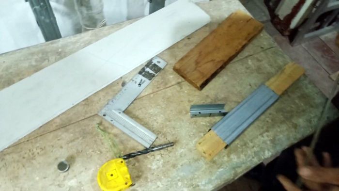 Сама доска будет распираться между стоечными профилями CD. По месту, напротив ее прилегания, в профиля вставляются короткие обрезки рейки.