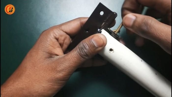 Далее нужно прикрутить трубки к петлям. Для этого в них просверливаются или прожигаются отверстия. В месте примыкания трубы к петле потребуется сделать врезку. Для надежности прикручивать винтами нужно в двух местах. В трубках подготавливаются 3 отверстия на одинаковом расстоянии под натягивание шнура.