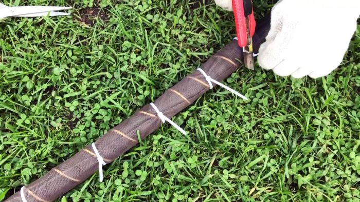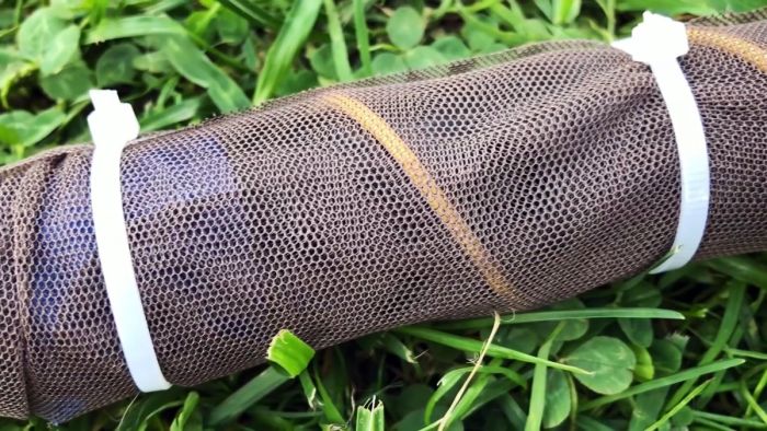 Поверх перфорации накручивается леска для триммера, и труба обматывается фильтрующей сеткой из нержавейки.