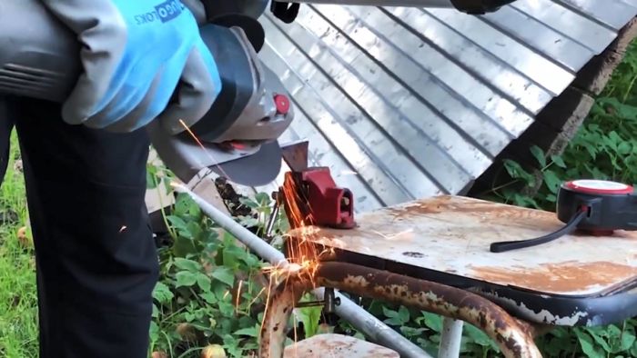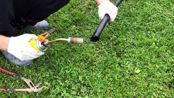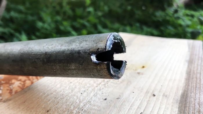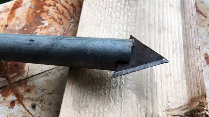 На торец одной трубы вваривается заточенная треугольная пика, вырезанная из листовой стали.