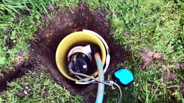 Его второй конец подсоединяется к погружному насосу. Сам насос опускается в ведро, которое устанавливается в дальнем приямке.