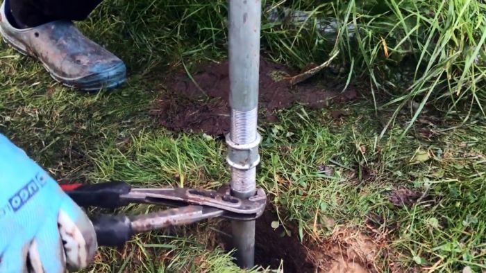 Погрузив первую штангу, нужно снять с нее рукоять и присоединить вторую трубу на соединительную муфту. Чтобы они не рассоединились, ставятся контргайки с обеих сторон.