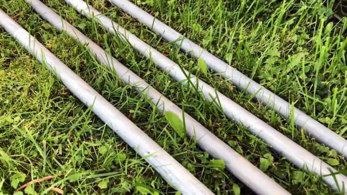 Для бурения абиссинской скважины нужен гидробур. Для его изготовления потребуется закупить металлические оцинкованные трубы. Их количество рассчитывается в зависимости от того, на какой глубине будет залегать вода. Это можно выяснить, посмотрев глубину колодцев на соседних участках. В любом случае нужно не более 4-5 труб по 2 м, так как насосные станции имеют высоту всасывания до 8 м, так что с большей глубиной скважины они не справятся.