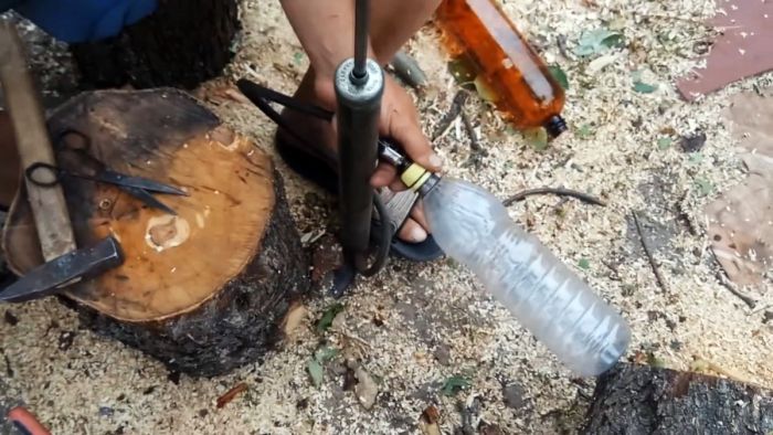Модернизированная крышка накручивается на фигурную бутылку и та слегка накачивается насосом.