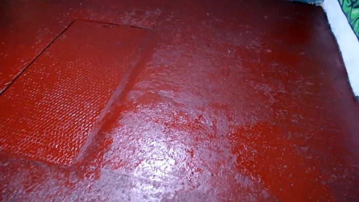 Как только внешне раствор станет сухим, нужно еще раз пропылесосить пол и можно переходить к покраске. Оптимально применять эпоксидную эмаль для бетона, так как она более износоустойчивая, чем алкидные краски. Обязательно необходимо организовать хорошее проветривание, или же использовать респиратор для малярных работ.