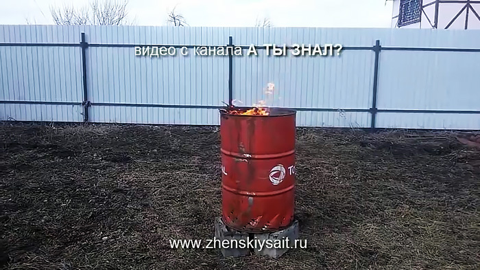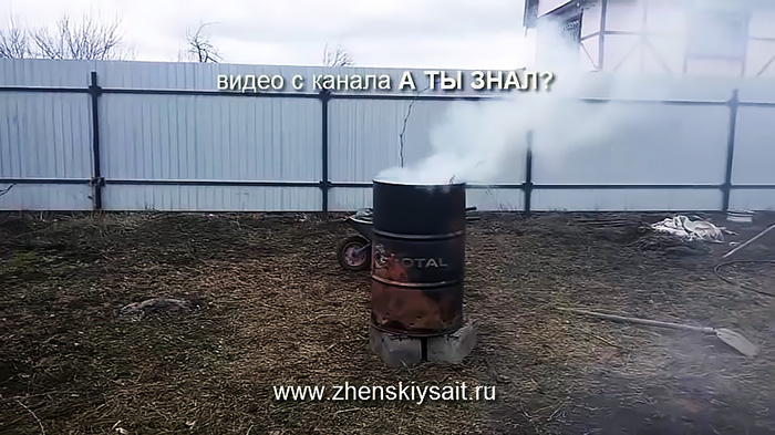 Бочка устанавливается на кирпичи или другие блоки, чтобы она не касалась грунта. Затем в нее засыпается садовый мусор для сжигания. Важно, чтобы топка не находилась под кроной деревьев. Затем сброшенный внутрь мусор зажигается.