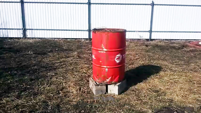 - старая стальная бочка 200 л;