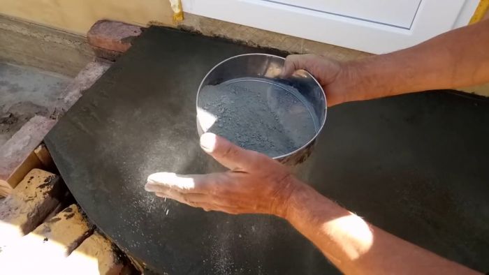 Этот способ железнения называется «сухим». Для достижения максимальной прочности корки рекомендовано доводить толщину слоя до 3 мм. В этом случае примерный расход цемента составит 5 кг/м2.