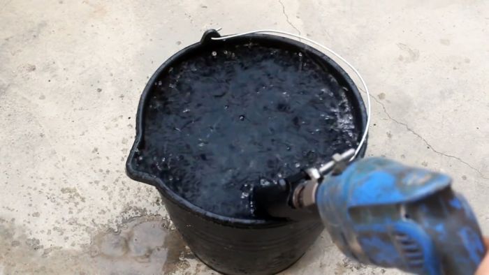 Желательно перед использованием покрасить вибратор и переходник, если планируется его использовать больше пары раз. Полученное устройство за счет неравномерного утяжеления штока при включении дрели очень сильно вибрирует. Это позволяет при погружении вибратора уплотнять бетон, вгоняя его в мелкие полости, куда он не попадает самотеком.