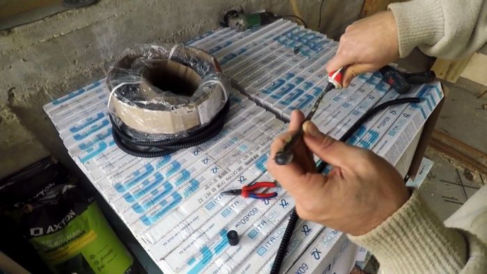 Далее отрезается кабель немного длиннее трубы. С одной стороны на нем делается загиб на 2-3 см. Затем кабель смазывается солидолом, литолом или любой другой смазкой.