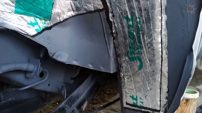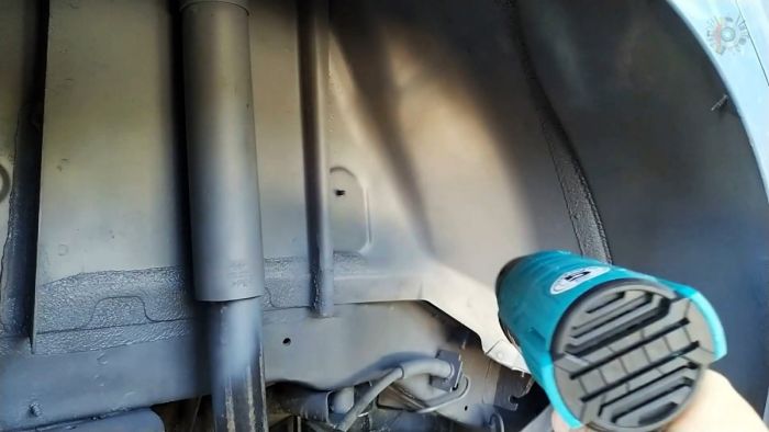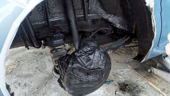 В это время можно оклеить пороги и крылья малярным скотчем, чтобы не запачкать лакокрасочное покрытие. Если планируется делать шумоизоляцию, то она приклеивается до антикора, затем состав наносится прямо по ней.