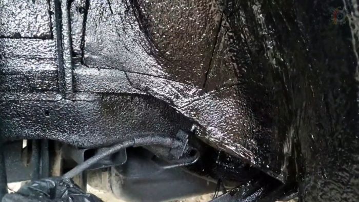 Чтобы раз и навсегда защитить днище и арки автомобиля от коррозии, необходимо провести их обработку смесью пушечного сала и полимерно-битумной мастики. Данный состав легко наносится, надежно держится, не скалывается и не смывается.
