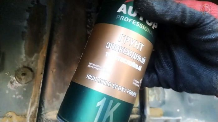 Как только обезжириватель испарится, наносится эпоксидный грунт. Он очень хорошо прилипает, поэтому следует использовать именно его. Для ускорения процесса эпоксидный грунт можно высушивать феном.