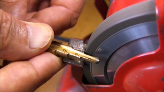 Ступенчатые сверла прекрасно точатся на токарном станке, но есть он не у всех, а платить токарю за такую работу невыгодно. Если в мастерской имеется только наждак, то сверло можно поправить и на нем. Однако специфика наждака позволяет это сделать только переточив режущие кромки по-новому, что, впрочем, не сложно.