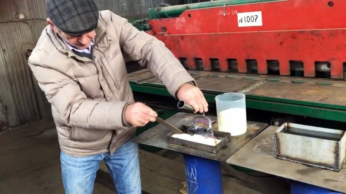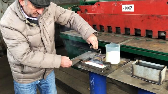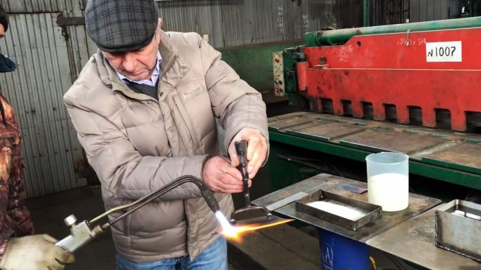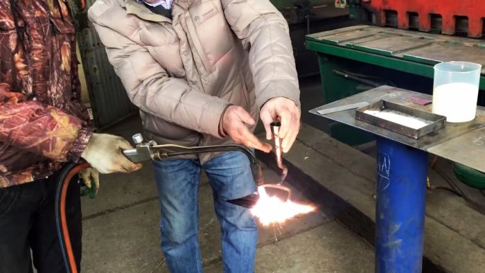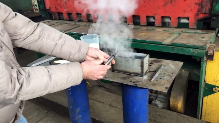 Раскаленный инструмент погружается режущей кромкой в порошок желтой кровяной соли. При контакте кристаллы начнут плавиться, что сопровождается появлением ядовитого дыма. В связи с этим работы лучше проводить под вытяжкой или на улице.