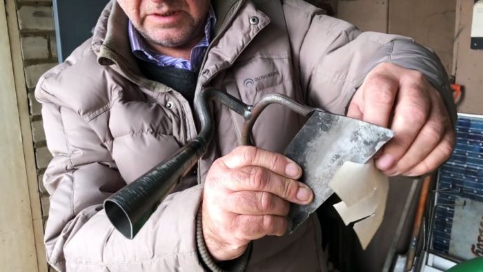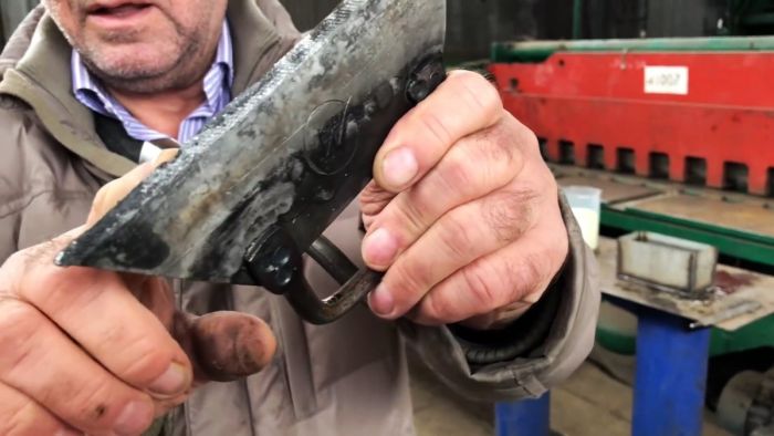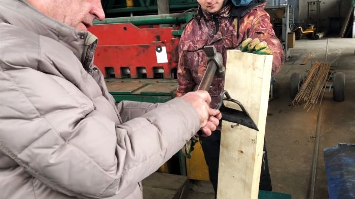 На примере тяпки можно оценить насколько ее лезвие стало прочнее после закалки с предварительным цианированием.