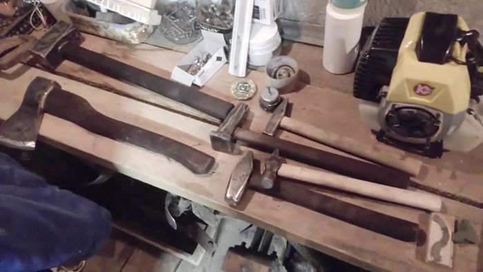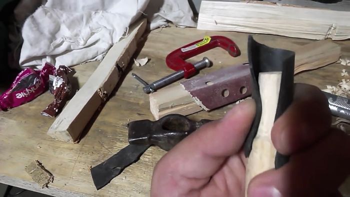 Все вышеописанное можно повторить один к одному, как с топором, так и кувалдой. Клей, конечно, со временем может местами отскакивать, поэтому придется его восстанавливать. Рукоять можно обжечь с помощью паяльной лампы или газовой горелки и затем хорошенько протереть ветошью. Это придаст рукояти благородный вид и удобство в работе.