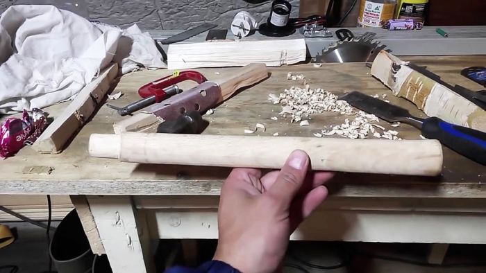 Рукоять можно приобрести в строительном магазине или изготовить самому из твердых пород дерева, к которым относятся: дуб, береза, клен, рябина, бук, ясень, кизил и другие. Только следует при выборе обратить внимание на торец заготовки и остановиться на той, у которой годовые кольца расположены продольно, а не поперечно. Такая рукоять будет прочней и прослужит дольше.