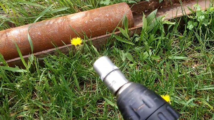 Затем в торцевую головку вставляется болт резьбой вперед, чтобы его шляпка осталась внутри. Край болта зажимается в патроне дрели.