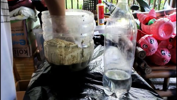 В отдельной достаточно большой емкости замешивается цемент с водой. Нужно получить жидкую консистенцию, способную пропитывать ткань, но не совсем текучую как чистая вода.