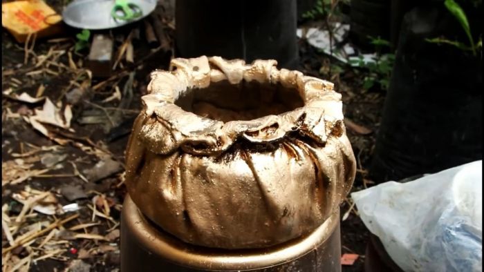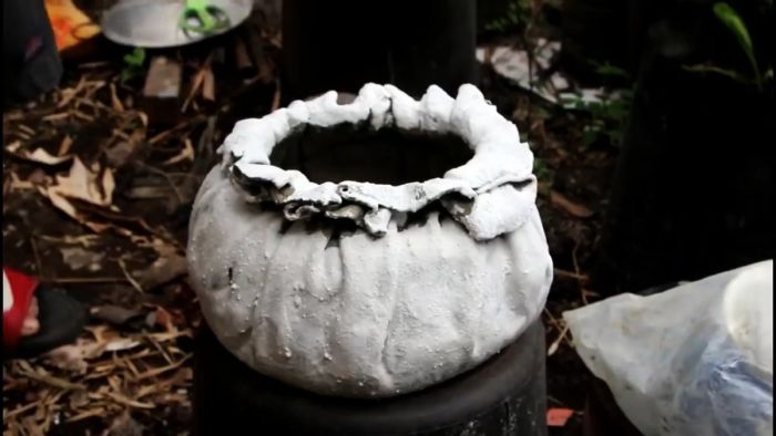 Для пересадки растений можно сделать цементные горшки в виде мешочков. Они смотрятся весьма свежо и необычно. Цементные горшки можно делать любого размера от совсем маленьких, до больших, предназначенных для посадки декоративных деревьев.