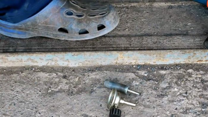 Источником пламени в мини горне будет служить газовая горелка. Нужна обычная самая дешевая без пьезоподжига с трубкой между вентилем и горелкой. Необходимо распылить ее пополам, и затем соединить концы трубки с помощью тонкого эластичного шланга.