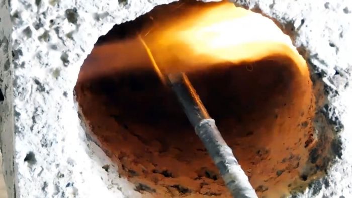 При использовании хорошего шлакоблока чаша горна нормально переносит нагрев и остывание. Столь маленькая горелка греет бетон плавно, поэтому он не растрескивается. Если такое со временем и случится, то из надрезанного шлакоблока можно сделать еще как минимум 1 чашу. Мини горн вполне справится со своими задачами, причем намного лучше, чем просто при нагреве заготовок на открытом воздухе. Его применение снизит расход газа и позволит нагревать детали до более высоких температур.