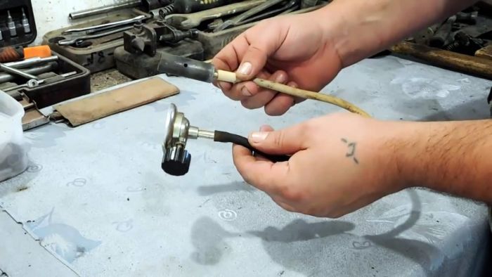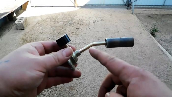 Также стоит отметить, что доработанная горелка будет полезной помимо обеспечения работы горна, еще и для удобного прогрева поверхностей в труднодоступных местах, куда газовый баллон не пролазит. Кроме того, поскольку баллон постоянно остается на месте, то пламя из горелки всегда ровное. Когда же орудуешь обычно горелкой с прикрепленным баллоном, то при взбалтывании факел усиливается, что для тонкой работы неприемлемо.