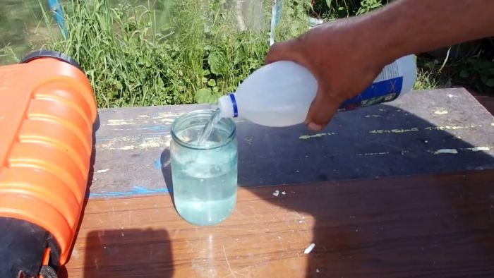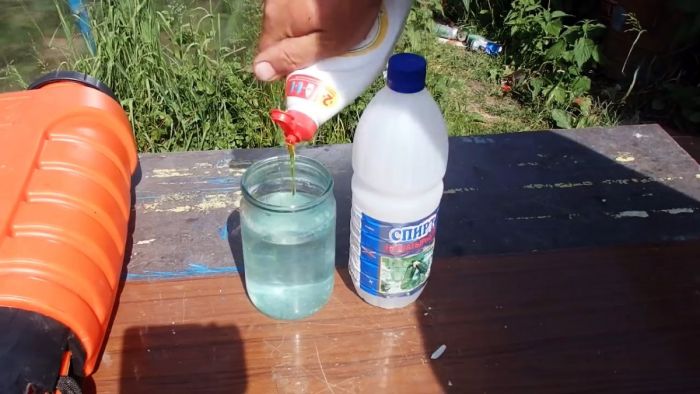 Для опрыскивания картофеля необходимо смешать в 10-12 л воды 2 ст. ложки нашатырного спирта и несколько капель жидкого мыла или средства для мытья посуды.
