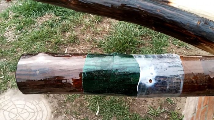 Процесс защиты столбов от гниения при помощи ПЭТ бутылок