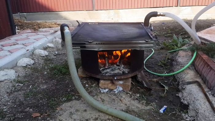 В печи разводится костер, который в свою очередь нагревает радиатор.