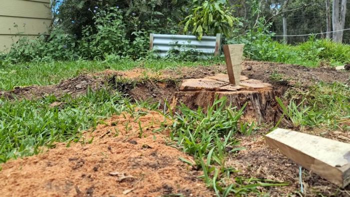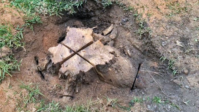 Процесс удаления пня клиньями