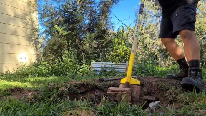 Он позволит обломать имеющиеся под ней тонкие корни. Если сколотый кусок не идет, то нужно заняться остальной корягой. Удалив все вокруг, можно будет подрубить идущий вниз толстый корень на оставшемся сегменте ударами сбоку.