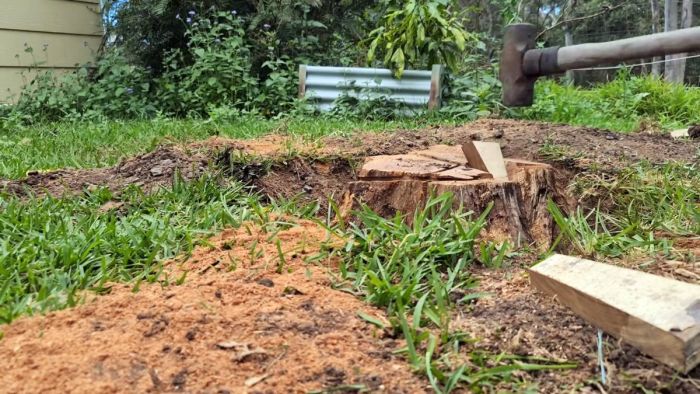 Вставляя клинья в разрезы в пне нужно вбивать их кувалдой.