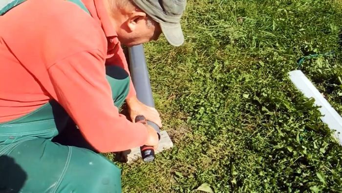 Монтаж водостока нужно начать с изготовления желоба. Для этого необходимо распустить пластиковую трубу 110 мм вдоль.